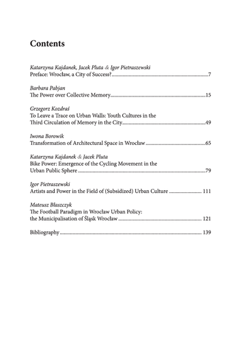 W kolejnych rozdziałach książki opisano zdarzenia oraz sytuacje, które są mniej lub bardziej bezpośrednim przykładem przemieszania starych i nowych form polityczności w sferze publicznej miasta, na styku relacji władzy lokalnej z pozostałymi jej interesariuszami, oraz samymi mieszkańcami.