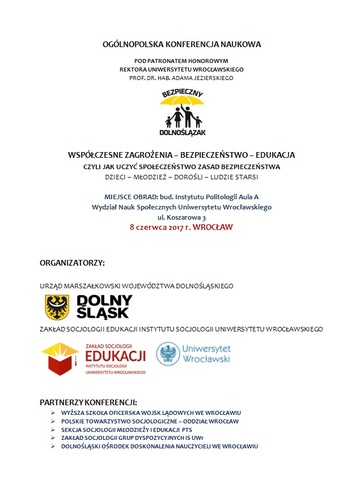Znajdujesz się w: Strona główna > Wydarzenia > Konferencja Współczesne zagrożenia - bezpieczeństwo - edukacja